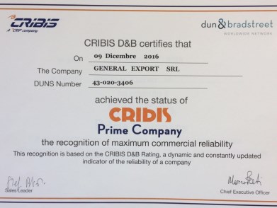 Prestigioso riconoscimento conferito a Genex Il 9 dicembre 2016 Dun & Bradstreet ha conferito all'Azienda livornese il Certificato Prime Company, con un Rating di 1/a, il punteggio massimo in termini di affidabilità sia commerciale che finanziaria. Il Certificato viene rilasciato solo dopo un regolare e costante monitoraggio delle attività aziendali e si pone come testimonianza inequivocabile delle politiche aziendali in termini di termini di pagamento con i fornitori e massima efficienza della qualità dei servizi. Il numero del certificato è CRIBIS-DUN&BRADSTREET 42 020 3406. Dopo un'attività ininterrotta dal 1980 ad oggi, possiamo dire che l'industria navale italiana e internazionale ha riconosciuto la professionalità di una Nvocc che ha basato tutti i suoi rapporti e sviluppi sulla neutralità e sull'etica.